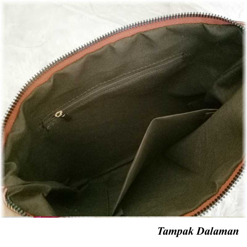 Dalaman ada 1 kantong resleting dan 1 kantong tanpa resleting