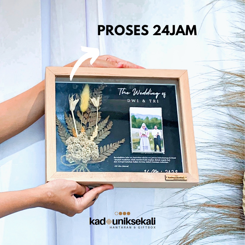Detail Produk : - Frame Rustic Volume / rongga dalam 25x20x5 cm - Bingkai 3D bisa berdiri tegak dan disediakan juga gantungan untuk pajang didinding - Frame bisa dibongkar pasang - Kaca Jenis akrilik 100% Anti Pecah - Latar menggunakan print out kertas photo premium glossy cetak tinggi - Bebas Request (Semua Tulisan yang ada di frame bisa dicustom sesuai acara) - Harga sudah termasuk semua Aksesoris yang ada didalam bingkai