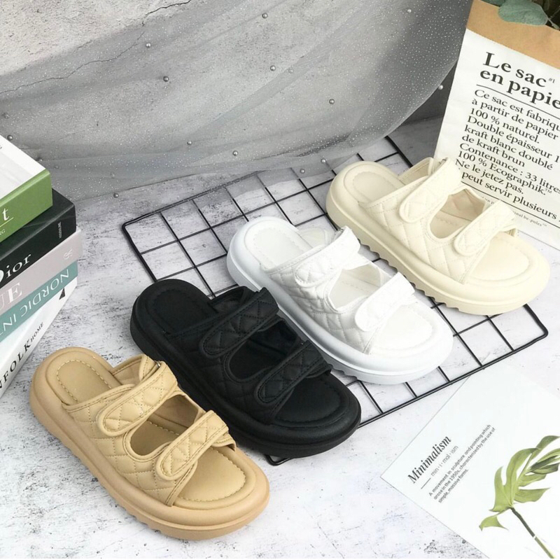 KODE :A607 HARGA : Rp.230.000 UKURAN : 36-40 Tinggi 4cm WARNA : black,brown,white&cream