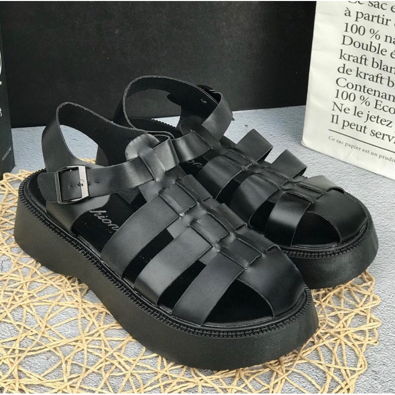 KODE :c6a HARGA : Rp.210.000 UKURAN : 36-40 Tinggi 5cm WARNA : black &cream