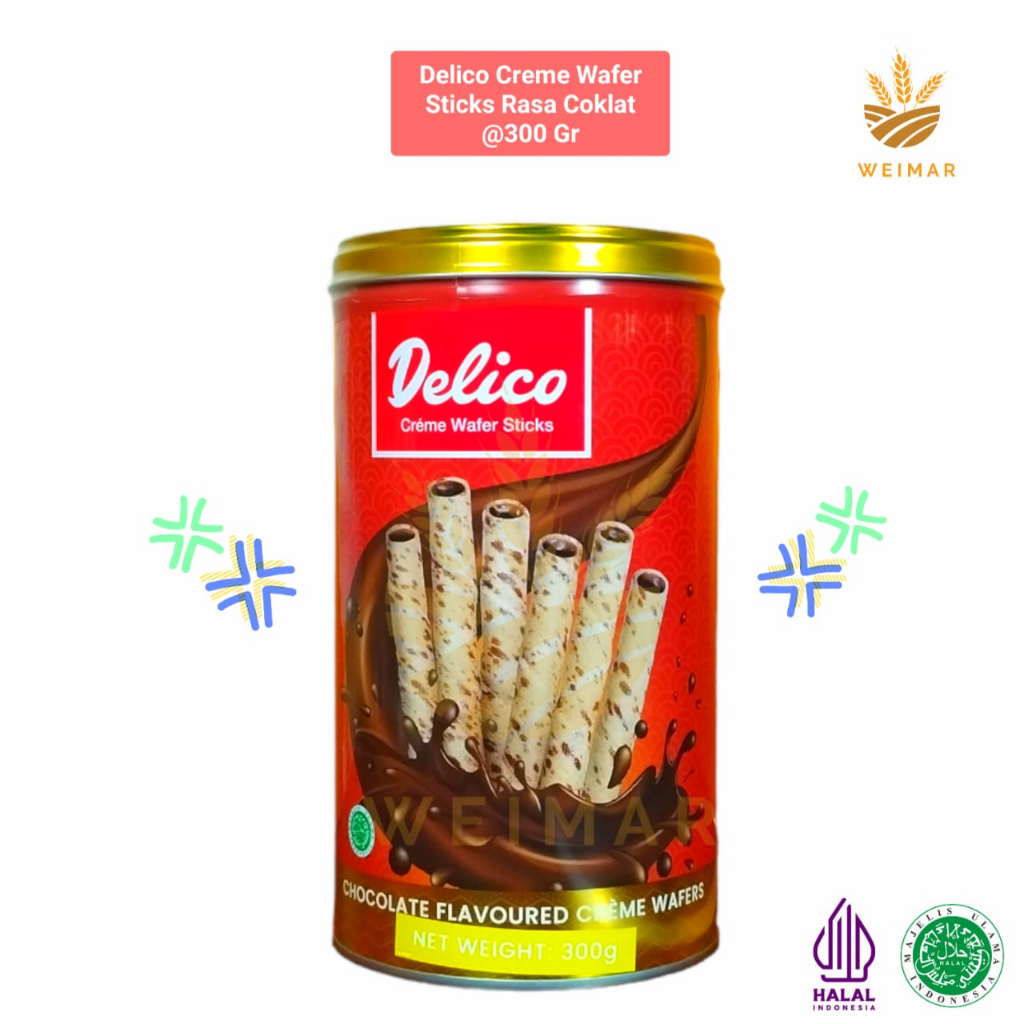 Delico Creme Wafer Sticks . Wafer Stick Premium dengan isi Cream yang berlimpah. . Komposisi : Gula Pasir, Tepung Terigu, Minyak Olein Kelapa Sawit, Bubuk Kokoa (7%) , Pati Tapioka , Pati Jagung , Maltodkstrin , Tepung Beras, Susu Bubuk Full Cream , Whey Bubuk , Garam , Pewarna Alami Karamel III , Pengemulsi Lesitin Kedelai Dan Perisa Sintetik Vanila .BPOM RI MD 836131001580 Varian rasa : chocolate