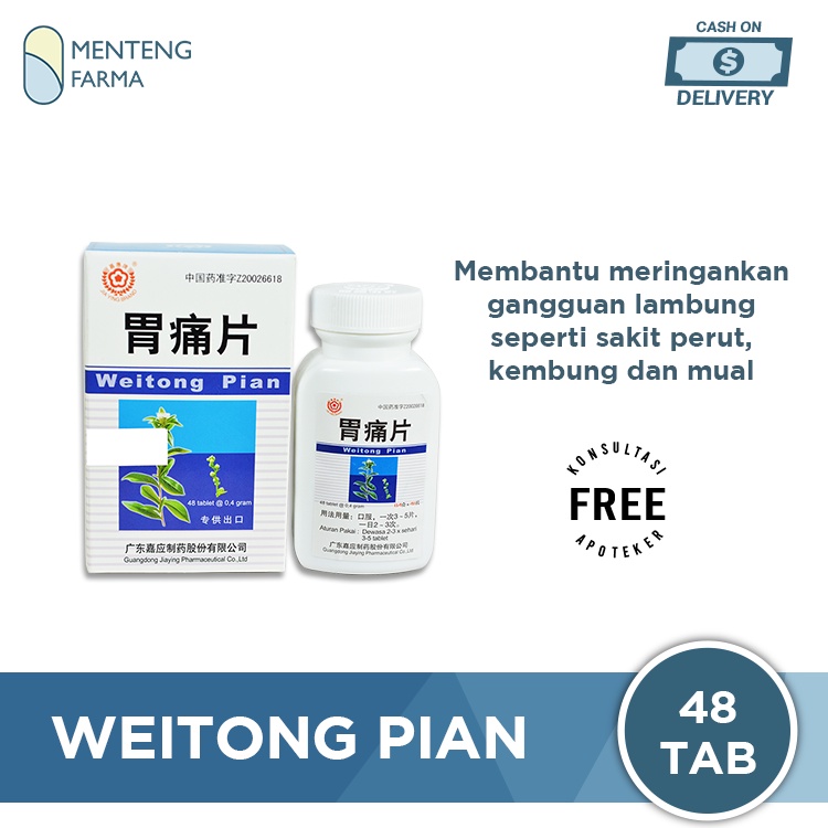 Weitong Pian merupakan Obat herbal china yang digunakan untuk membantu mengurangi gejala sakit maag dan asam lambung yang berlebihan seperti rasa nyeri pada perut / ulu hati (kolik), mual, muntah-muntah, perut kembung, begah, sering bersendawa, dan gejala asam lambung lainnya.