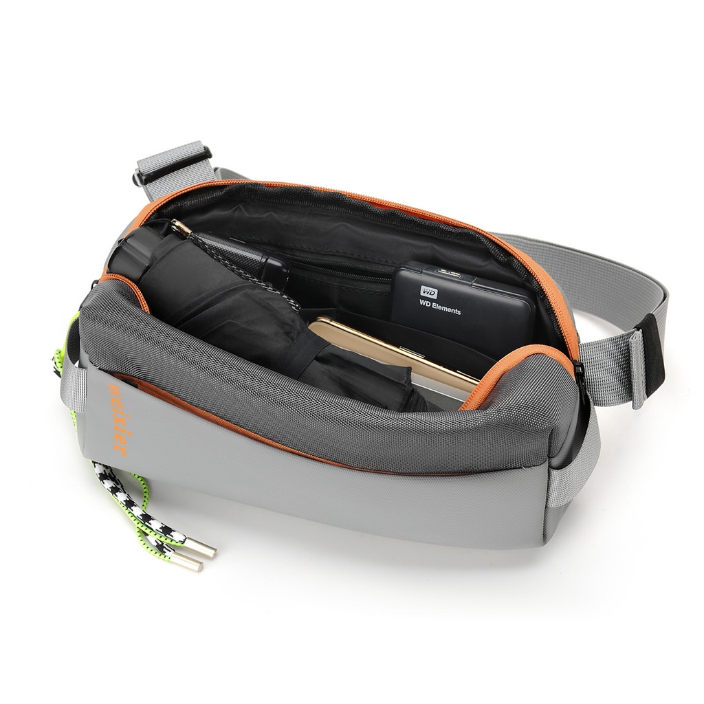 SPESIFIKASI PRODUK Brand : WEIXIER Model : 9552 Bahan : Dolby Lotto Gaya : Waist Bag Interior : Furing / Lining bahan nilon Ukuran (P x L x T) : 30 x 5 x 14 cm Bukaan : Resleting Kepala Resleting : Metal Gender : Pria Panjang Strap : 120 cm