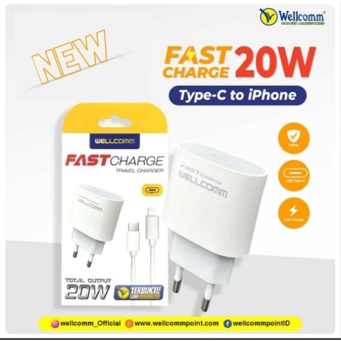 Wellcomm Charger 20w, terbukti Fast Charging Dan GAransi Resmi Wellcomm Free Kabel C To Lightning
