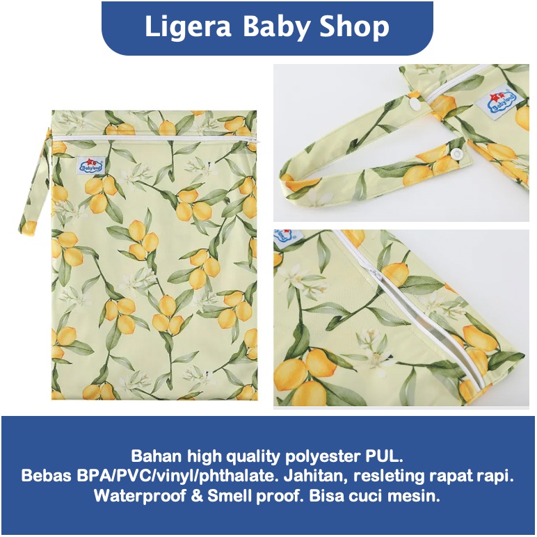 DESKRIPSI BARANG: - Merk Babyland 100% original diimport langsung dari pabriknya - Terbuat dari bahan waterproof PUL sehingga tidak bocor - Berukuran 20 cm x 30 cm (dengan toleransi ± 2-4 cm) - Dapat digunakan untuk menyimpan popok kain / baju renang yang sudah basah, menyimpan barang2 kebutuhan sehari hari seperti pembalut, sisir, bedak dan sebagainya