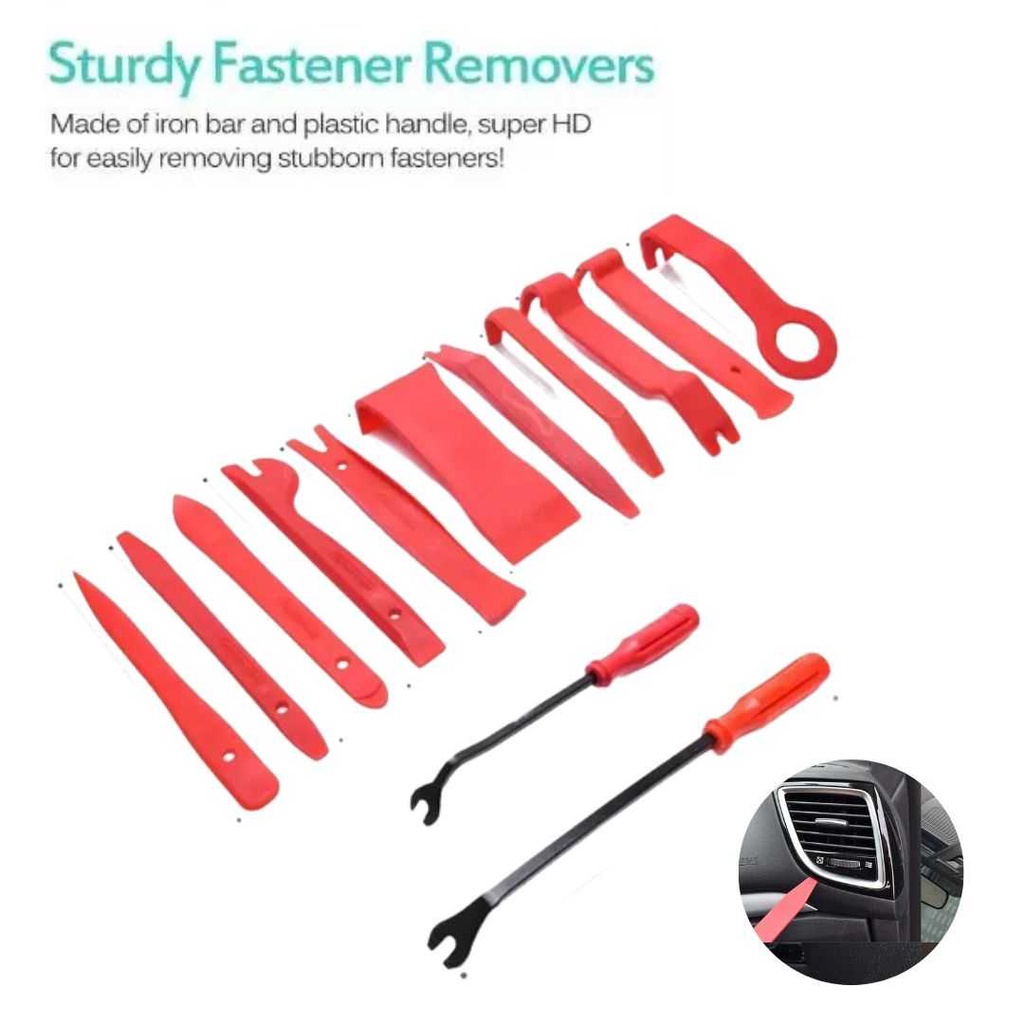 Jika Anda berencana melakukan modifikasi interior mobil khususnya pada bagian dashboard, maka set alat reparasi inilah yang Anda butuhkan. Set alat reparasi telah dilengkapi berbagai alat yang aman untuk proses pelepasan dan pemasangan interior hingga bagian terkecil. Trim removal tool siap membantu Anda melakukan reparasi mobil tanpa meninggalkan goresan sedikit pun. Fitur Bongkar dan Pasang dengan Aman Set alat reparasi dibekali berbagai alat fungsional untuk melakukan pemindahan dan pemasangan panel pintu, trim jendela, audio, dan bagian lain dari dashboard. Dengan begitu Anda dapat melakukan modifikasi dashboard tanpa meninggalkan kerusakan sedikit pun. Desain Ergonomis Nyaman Digunakan Berbagai alat telah didesain ergonomis saat digunakan. Anda dapat menggenggam alat dengan nyaman untuk mengakses celah yang sulit dijangkau. Alat tidak akan rusak atau bengkok meski digunakan untuk mencongkel bagian interior mobil. Alat Reparasi Paket Komplit Anda akan mendapatkan 13alat, mulai dariklip retainer mobil, alat pelepas trim, dan berbagai alat lainyang tentunya Anda butuhkan. Anda juga akan mendapatkan tas agar alat tersimpan dengan baik. Kualitas Alat Bisa Diandalkan Berbagai alat dibuat menggunakan material nilon berkualitas. Beberapa alat dibuat dengan paduan metal dengan gagang nilon. Jikadibandingkan dengan material ABS biasa, set alat reparasi ini jauh lebih keras, tahan karat, dan tahan benturan.