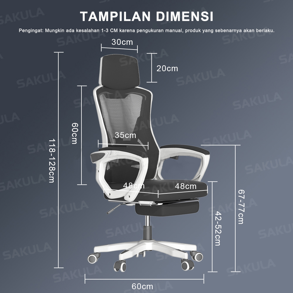 ๐บใKURSI KANTOR ERGONOMI KEMBALI TINGGIใ Desain ergonomis yang paling sesuai dengan struktur tubuh manusia, sandaran kepala yang dapat disesuaikan & penyangga pinggang yang menciptakan penyangga tulang belakang total, kursi ergonomis menyediakan 4 titik penyangga (kepala/punggung/pinggul/tangan) dan Sistem Lumbar menciptakan dukungan tulang belakang total.