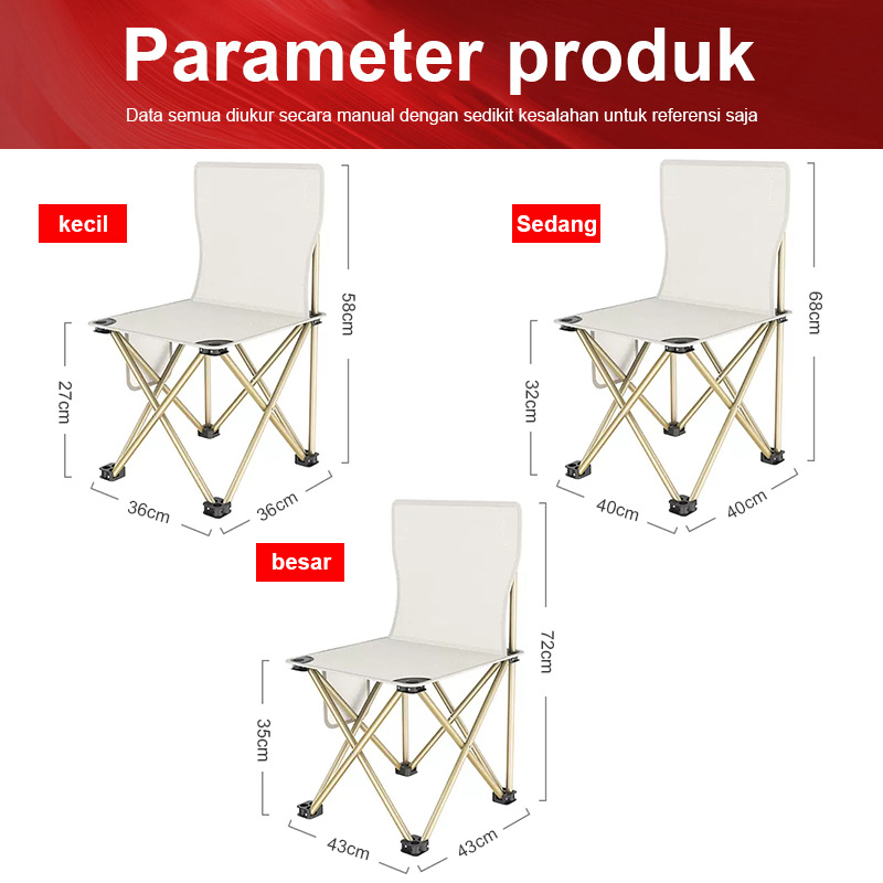 kursi pantai P:36*36*58CM XL:40*40*68CM XXL: 43*43*72CM