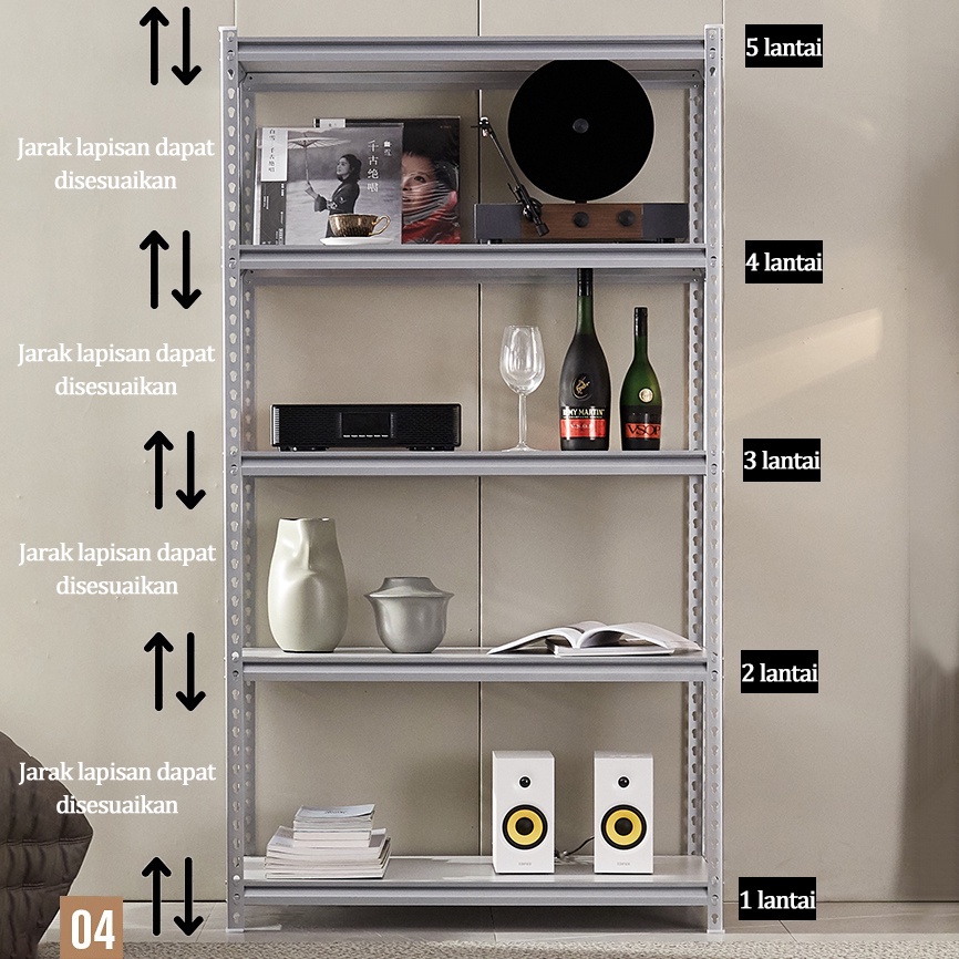 🍀Ketinggian setiap lapisan rak dapat disesuaikan sesuka hati 🍀Rak Besi Bisa 2 in 1 🍀Ini memiliki rangka besi pendukung tebal ekstra tebal, yang tidak mudah berubah bentuk atau terbalik setelah waktu yang lama 🍀Stabil & mampu menopang berat 200-300kg, dapat memuat banyak hal 🍀Misalnya::Dapat digunakan untuk rak buku/ruang tamu untuk menempatkan tangki ikan/rak dapur/rak makanan ringan supermarket/rak gudang/rak tanaman, dll.