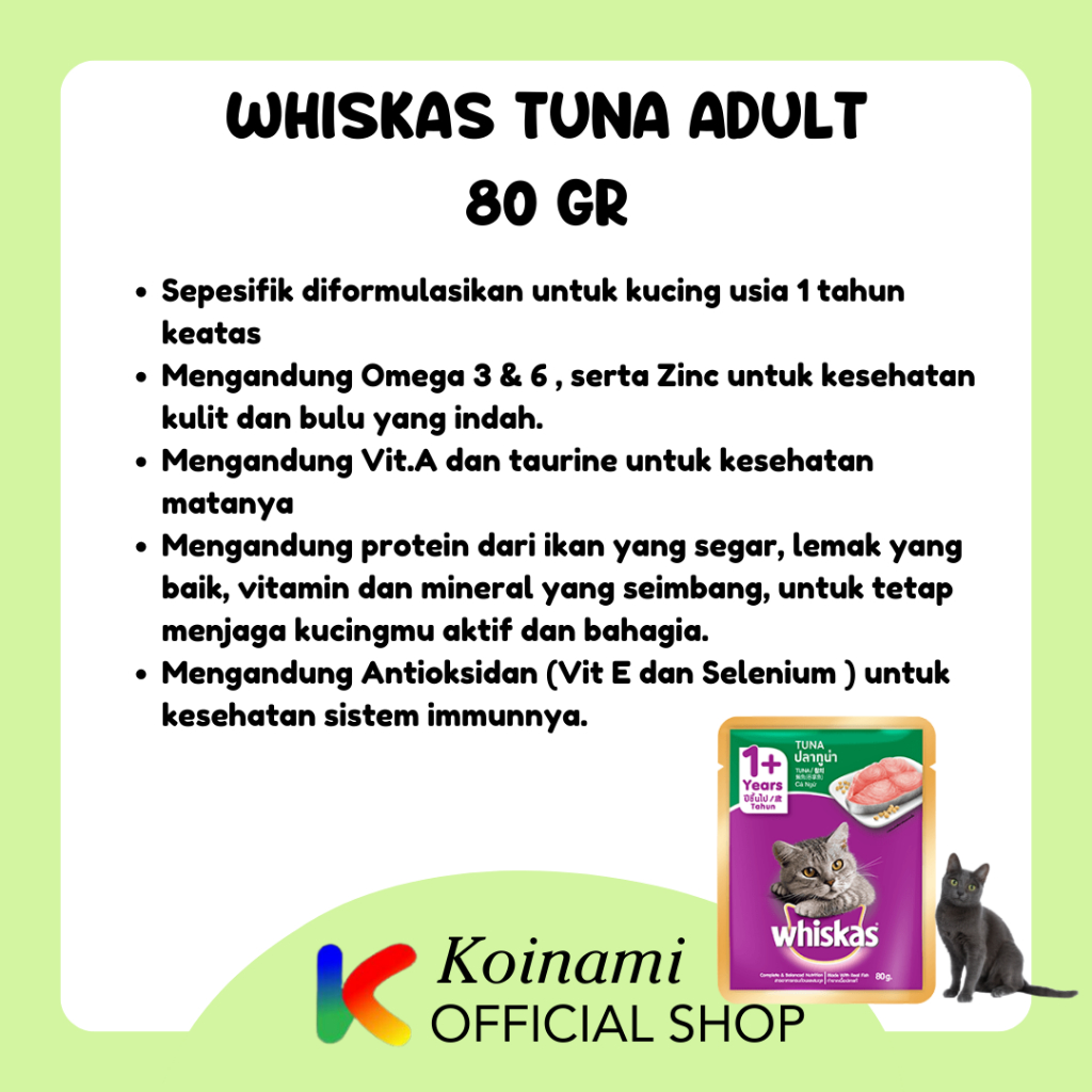 Detail WHISKAS 80gr TUNA ADULT / makanan kucing / pakan kucing / cat food / koinami petshop / dray food