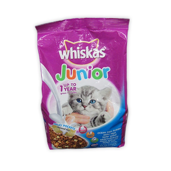 Produk Makanan Khusus Anak Kucing, Makanan Berjenis Kering Merk Wiskas Rasa Ocean Fish Dibungkus Dengan Kantung Steril Dan Mudah Untuk Dibuka