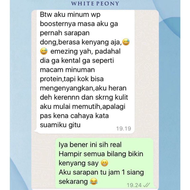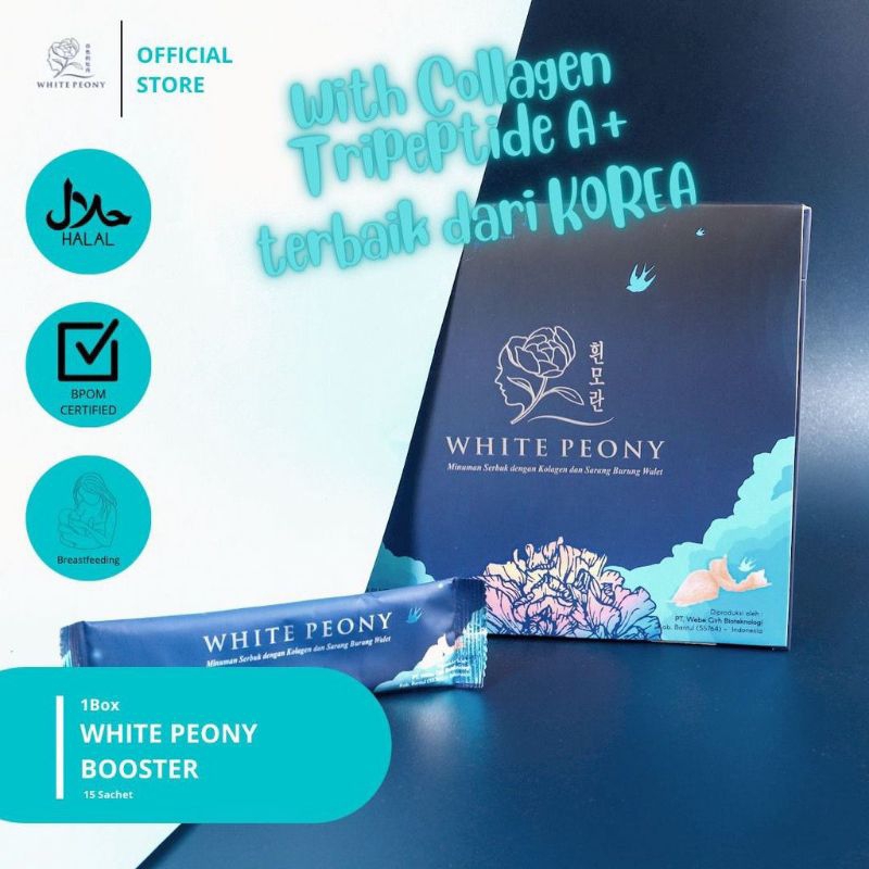 WHITE PEONY BOOSTER merupakan minuman kecantikan yg diformulasikan dari negara JAPAN dan KOREA dg kualitas collagen TRIPEPTIDE A+ dg total protein 95% dibanding tripeptide biasa dan memiliki keefektifan 3x lebih mudah diserap oleh tubuh daripada kolagen biasa. memiliki kualitas glutathione dengan grade tertinggi terbaik dari JAPAN dimana Japan merupakan produsen glutathione terbaik Dunia.