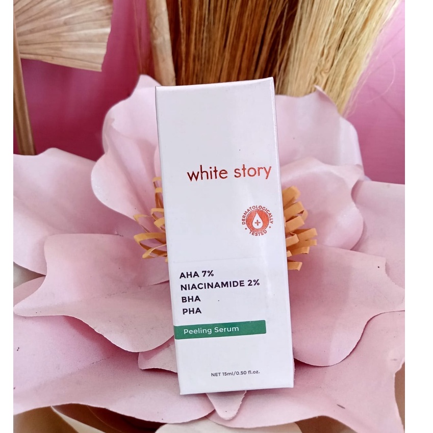 White Story Peeling Serum bermanfaat untuk: - Membantu mengangkat sel kulit mati pada permukaan kulit wajah & kotoran pada pori-pori - Mencerahkan & membantu meratakan warna kulit - Menyamarkan bekas jerawat - Membantu meningkatkan tekstur kulit - Merawat kulit berjerawat - Menjaga kelembaban kulit wajah - Merawat kehalusan & kekencangan kulit wajah