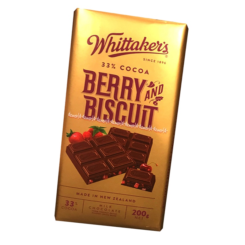 Makanan & Minuman > Makanan Ringan > Cokelat > Whittaker's Berry And Biscuit 200gr Coklat Import Whittakers Rasa Buah Beri Dan Biskuit Witakers Wittaker Whittaker Milk Chocolate Coklat Susu