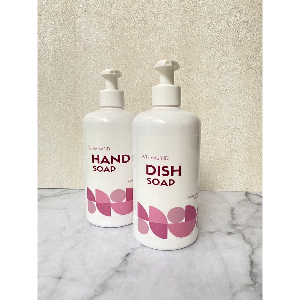 Detail WHT-122 Botol Sabun Cair Pump Aesthetic Putih 500ml - Pink Series