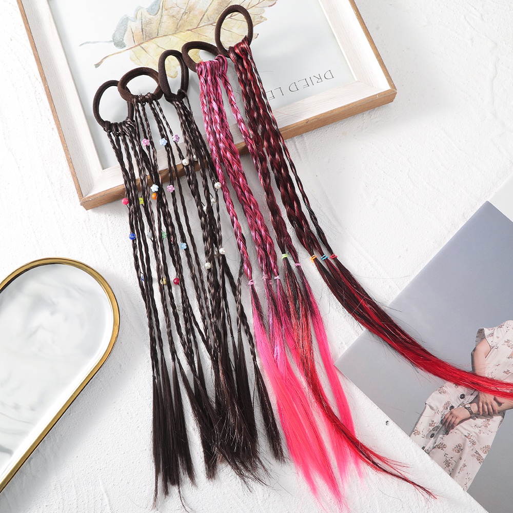 Detail Wig Anak Twist Kepang Ikat Rambut Gadis Warna-Warni Braided Hair Ring Aksesoris Rambut Wanita