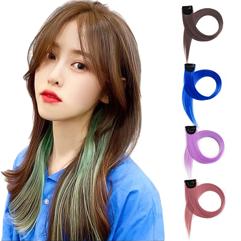 Detail Wig Lurus Panjang Dengan Klip wig Wanita multi Warna Yang Modis