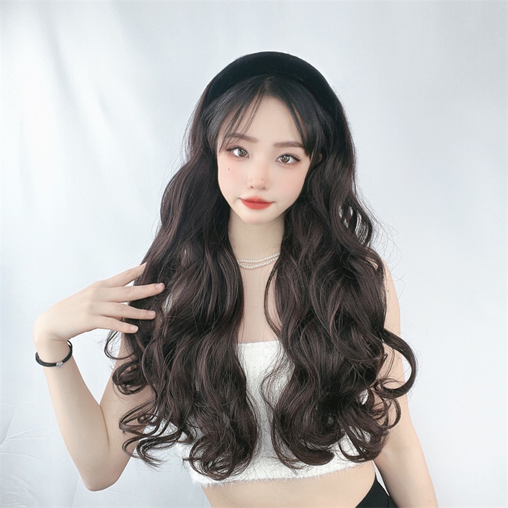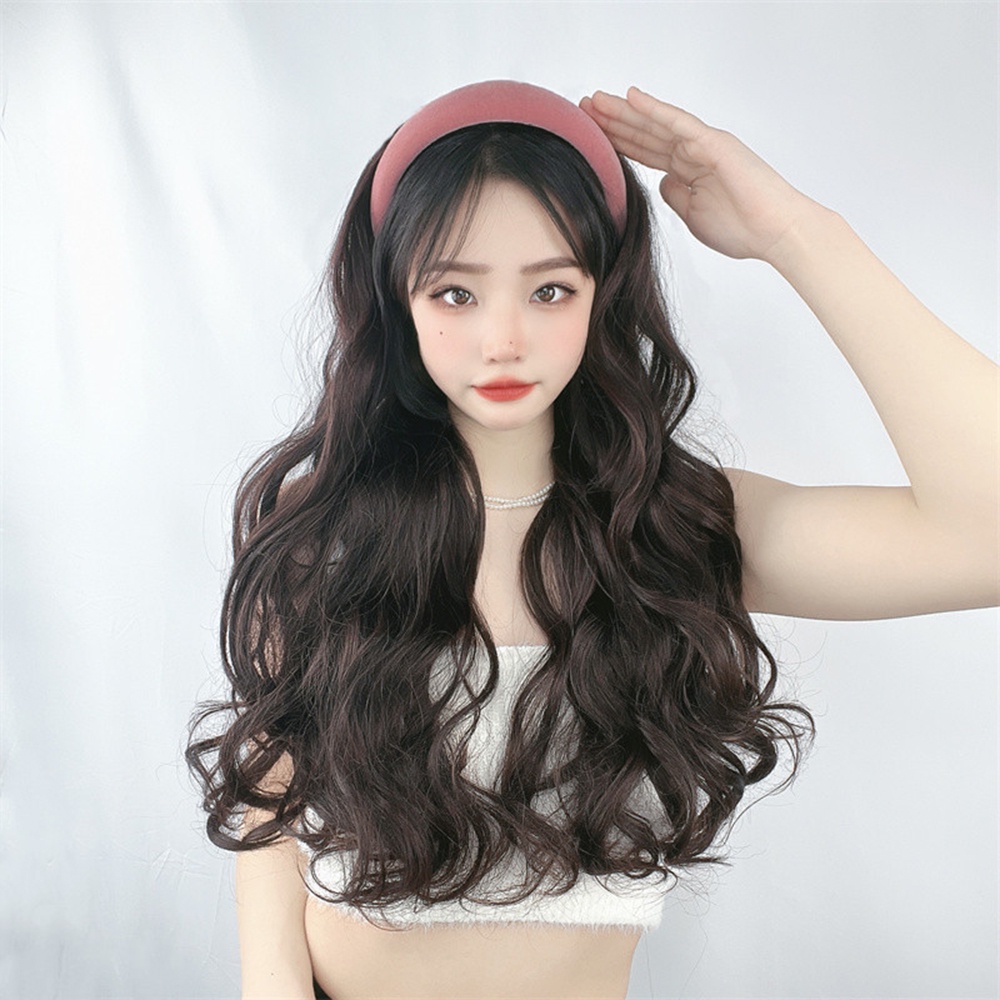 Wig Rambut Keriting Panjang Wanita Perempuan Dengan Hairband Half Head Cover Hair Extensions