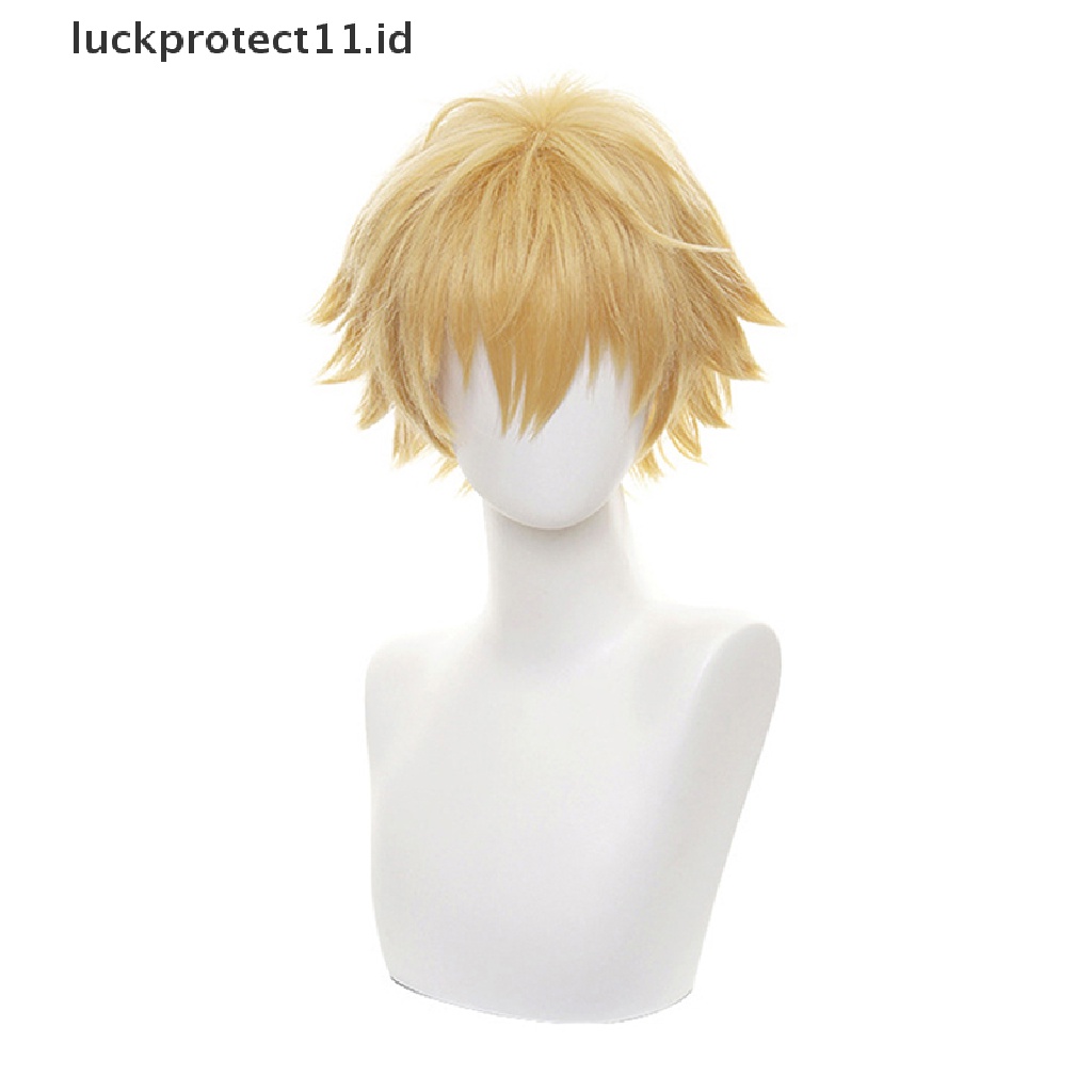 Detail Wig / Rambut Palsu Pria Model Pendek Warna Emas Untuk Cosplay Anime / Halloween