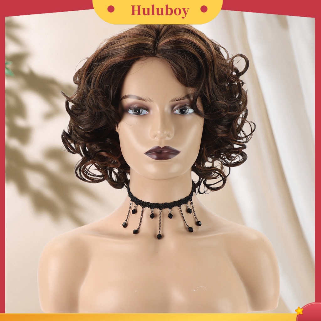 Detail Wig Rambut Pendek Keriting Bahan Serat Kimia Warna Coklat Untuk Wanita