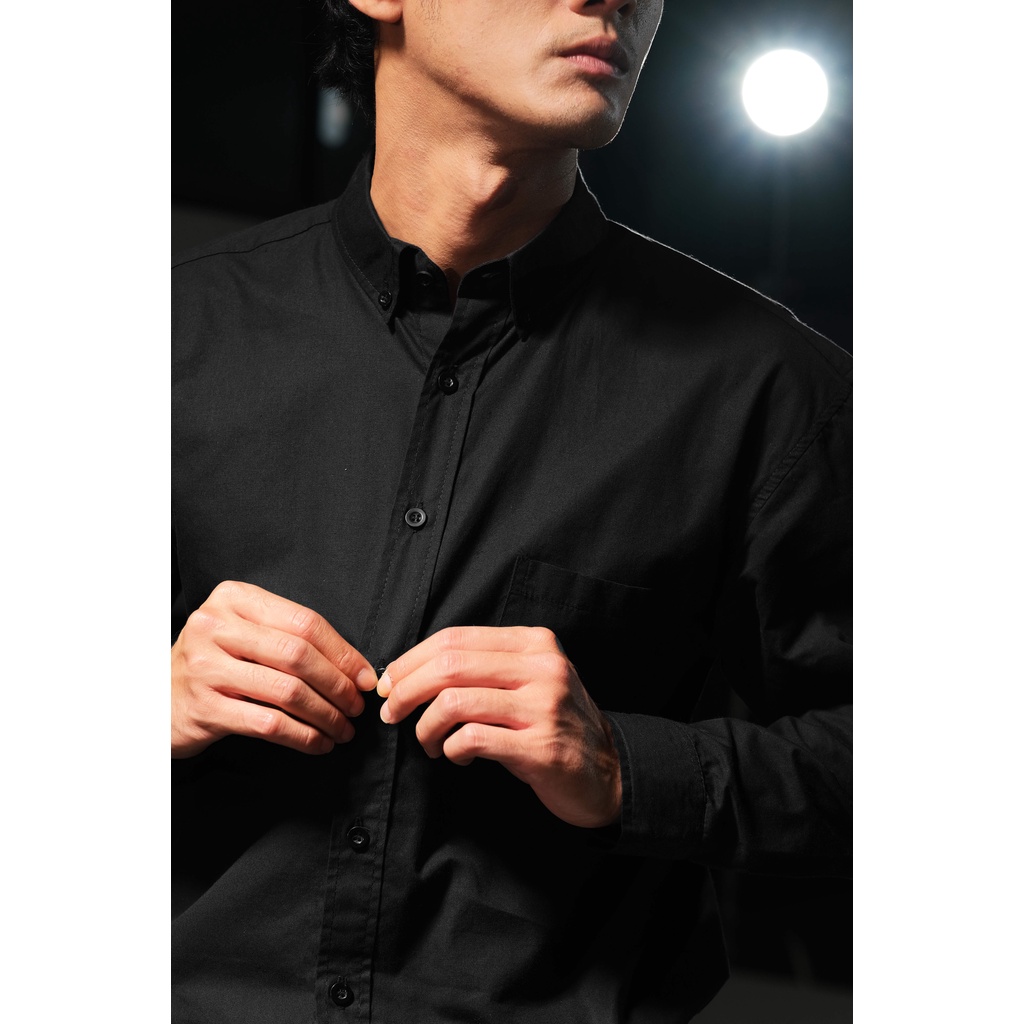 Detail Wilmerstudios Kemeja Poplin Pria Lengan Panjang Hitam
