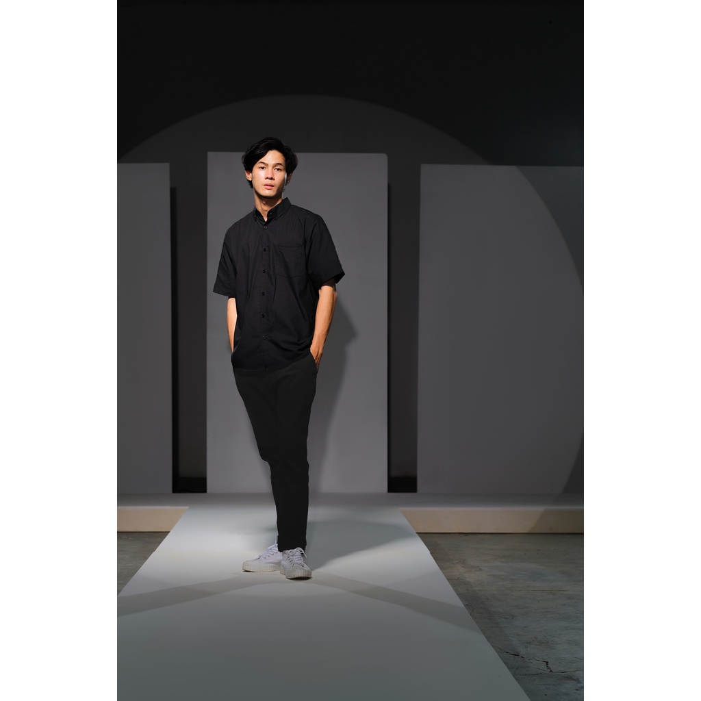 Detail Wilmerstudios Kemeja Pria Lengan Pendek Oxford Hitam