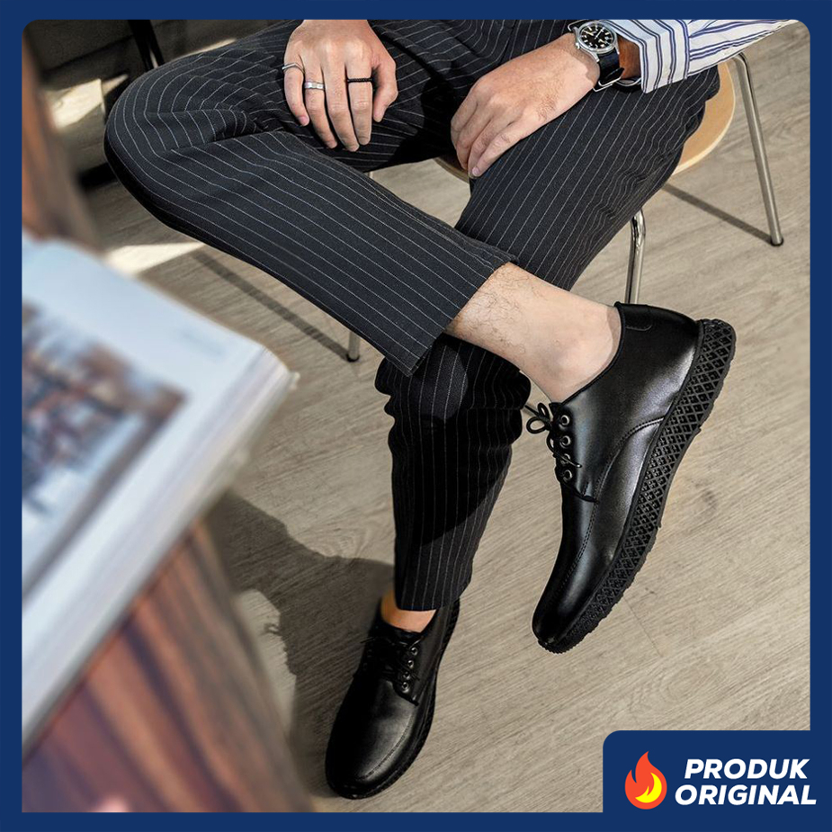 Sepatu Pria > Sepatu Formal > Oxford > WIN BLACK ORIGINAL x JOEY Sepatu Formal Full Hitam Tali Pria Pantofel Kerja Kantor Dinas Resmi Guru Kantoran Wisuda Kuliah Pesta Pernikahan Kondangan Nikah Undangan Wedding Modern Oxford Casual Derby Semi Kulit Premium JYF Footwear Keren Terbaru Branded