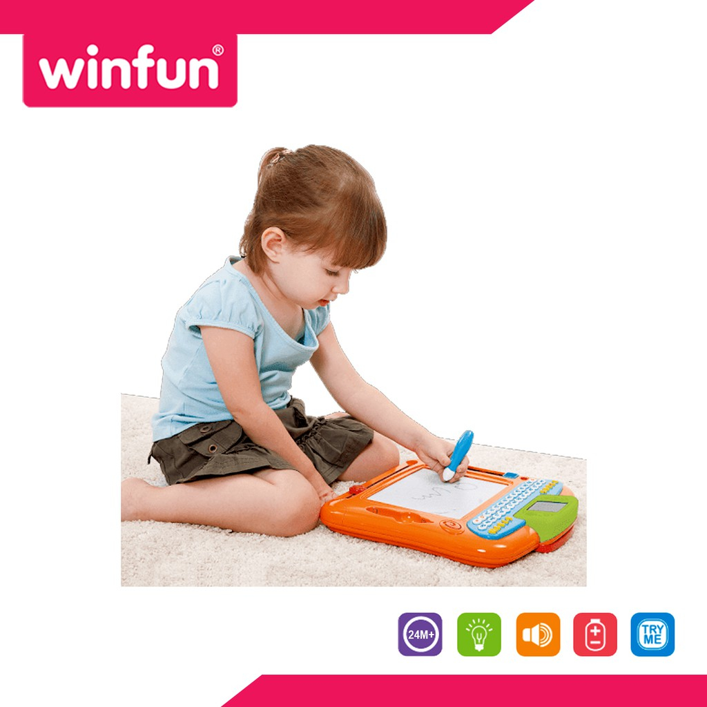 Deskripsi : Papan Tulis magnetik, Dilengkapi dengan 6 mode interaktif termasuk alfabet, angka, penulisan huruf besar dan kecil, menggambar, mengeja, permainan kuis dan musik, layar LCD dengan animasi menyenangkan, Lagu alfabet, 10 tombol angka mewakili 10 note keyboard.