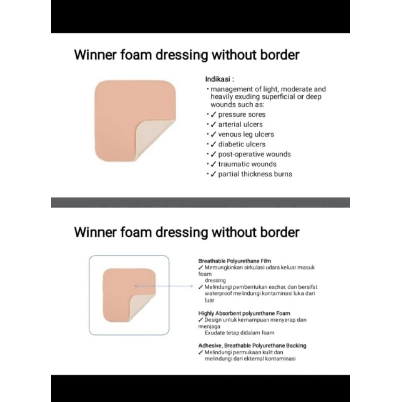 Detail Winner Silicone Foam Dressing Tanpa Border 10 x 10 Cm - Pcs