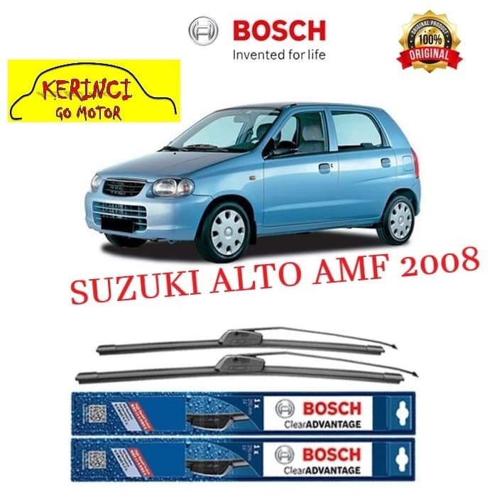 WIPER BOSCH CLEAR ADVANTAGE SUZUKI ALTO AMF 2008 UKURAN 22" & 14" HARGA SUDAH PER SET KANAN DAN KIRI BAGIAN DEPAN.
