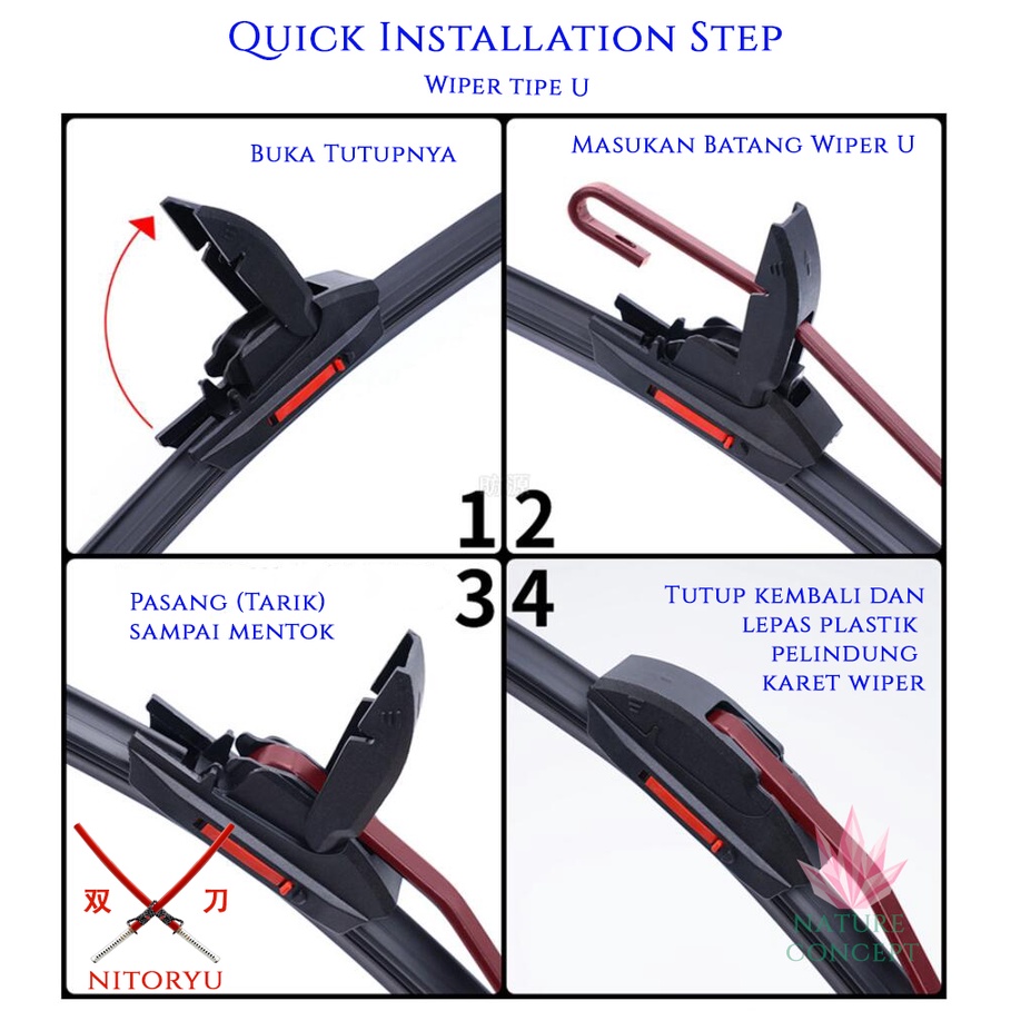 Detail Wiper Dual (2) Blade Quad (4) Blade NITORYU Frameless UNIVERSAL NEW Technology Wiper Mobil Tercanggih TERMURAH bisa untuk semua jenis mobil