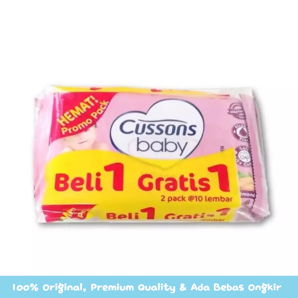 CUSSONS BABY Wipes 10'S - buy 1 get 1 salah satu varian tisu basah dari Cussons Baby dengan formula lembut yang dirancang untuk membersihkan kulit bayi tanpa menimbulkan iritasi, menjadikannya terasa halus dan lembut. Bahan ekstra tebalnya cukup kuat untuk membersihkan pantat bayi dan lembut untuk kulitnya. Dengan formula Almond Oil dan bebas alkohol, tisu basah ini akan memberikan aroma harum khas bayi yang lembut. Telah diuji secara dermatologis mengandung formula yang ringan dan lembut dipakai.