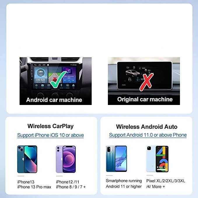 Kabel yang menjuntai saat menghubungkan smartphone ke head unit akan membuat mobil Anda tampak berantakan. wireless CarPlay dongle hadir agar Anda dapat mengakses beragam aplikasi menarik tanpa kabel yang mengganggu. Cukup hubungkan smartphone dengan CarPlay atau Android Auto pada head unit menggunakan koneksi bluetooth. Sekali Anda menghubungkannya, Anda tak perlu menghubungkan kembali nantinya.