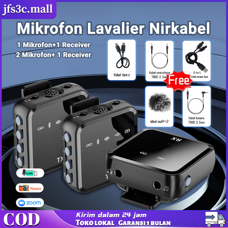 Wireless Microphone Professional Wireless 2 Mikrofon untuk HP DSLR Zoom Youtube Vlog Live Lavalier Mic clip on
