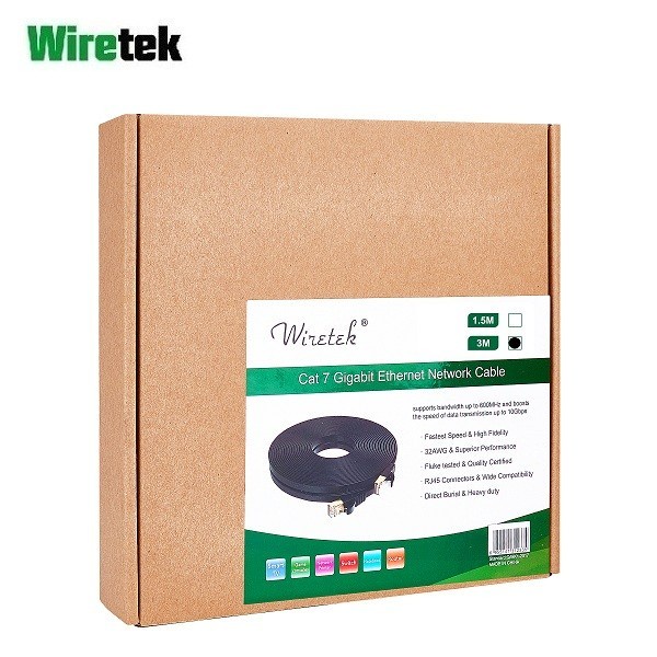 Specifications : - Brand : WIRETEK - Cable Type : LAN Cat 7 Gigabit Network FLAT Cable - Connector Type : RJ45 Gold Plated - Connection Type : Straight - Length : 3 meters - Support : 10G Base T, 1000 Base TX, 1000 Base T, 100 Base TX, 10 Base T