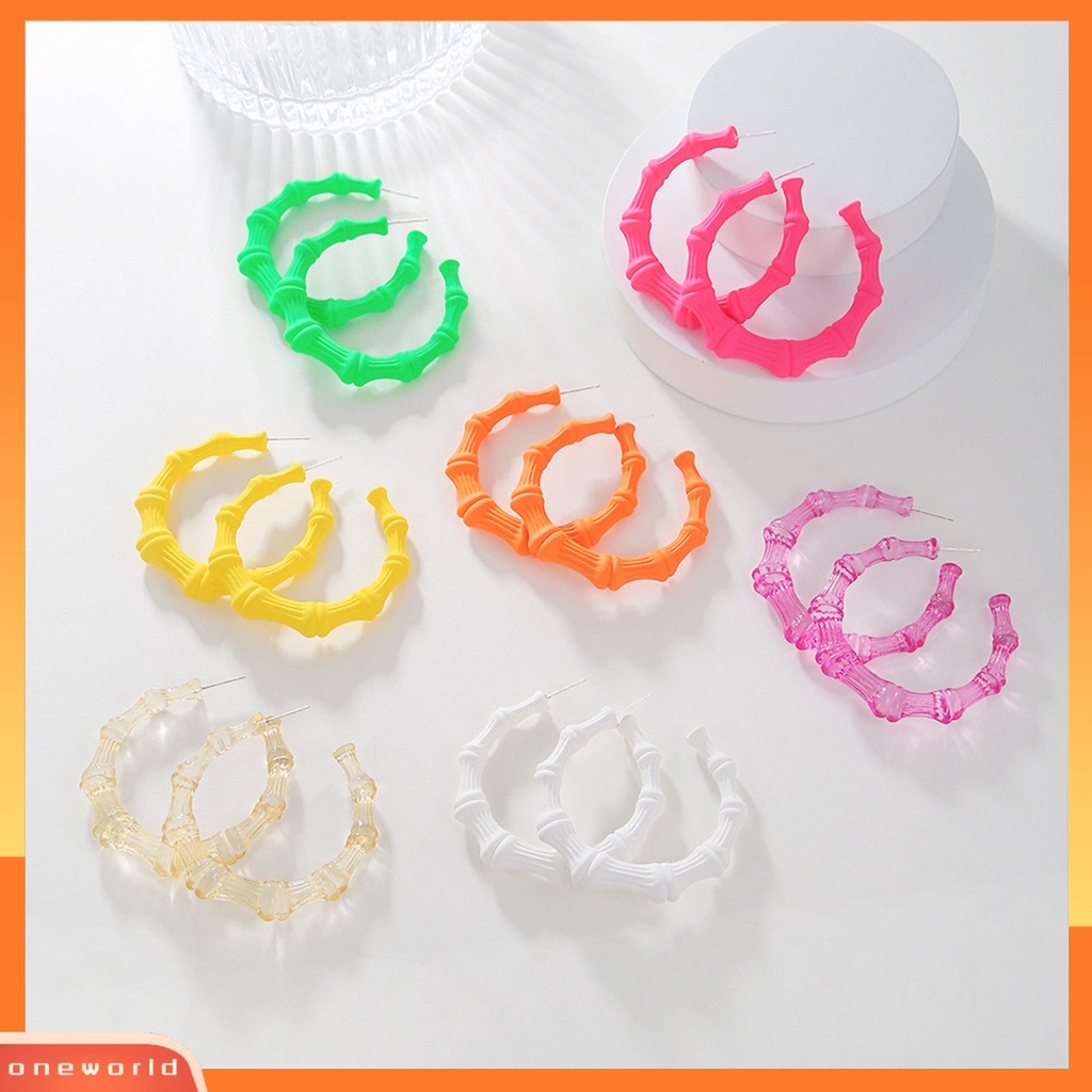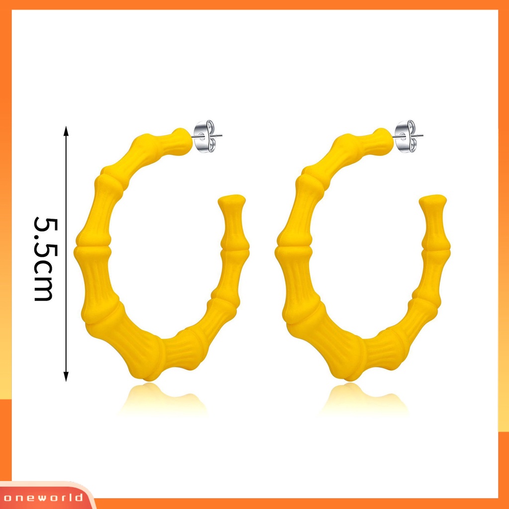 [WOD] 1pasang Anting Hoop Geometris Berbentuk C Tindik Cat ing Liontin Berdandan Tahan Luntur Anting Hoop Lingkaran Bambu Besar Untuk Kehidupan Sehari-Hari