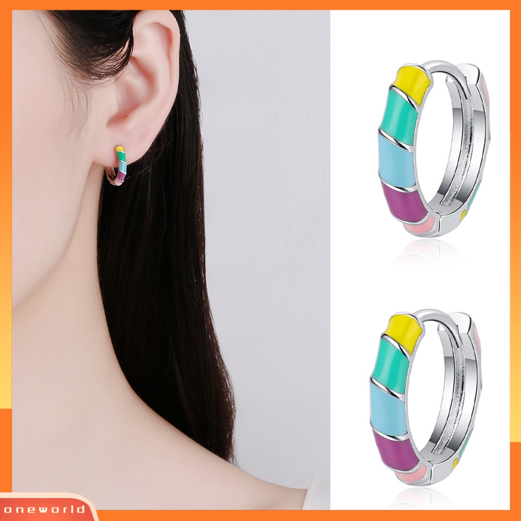 [WOD] 1pasang Anting Hoop Geometris Elegan Tindik Anti Luntur Semua Pertandingan Hadiah Hias Wanita Warna Pelangi Enamel Lingkaran Anting Perhiasan Untuk Perjamuan