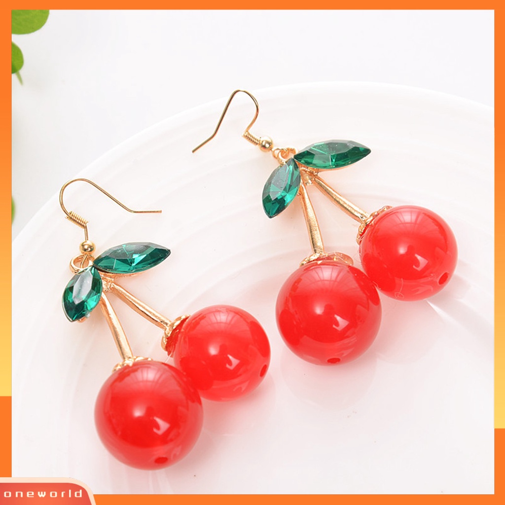 Detail [WOD] 1pasang Anting Kait Perhiasan Cherry Daun Anting Menjuntai Berkilau Tahan Lama Untuk Pakaian Sehari-Hari