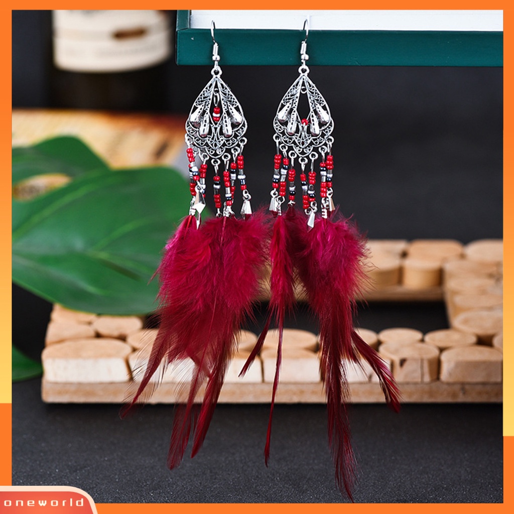 Detail [WOD] 1pasang Anting Lady Gaya Bohemia Rumbai Bulu Anting Drop Etnik Untuk Pakaian Sehari-Hari