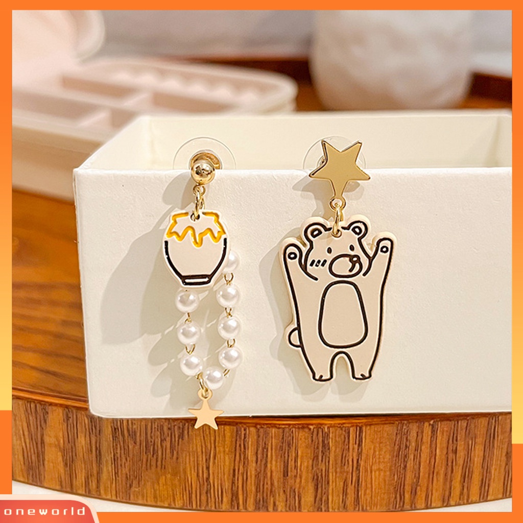 Detail [WOD] 1pasang Anting Menjuntai Kartun Dissymmetry Wanita Mutiara Imitasi Beruang Drop Earrings Perhiasan Aksesoris Untuk Pakaian Sehari-Hari