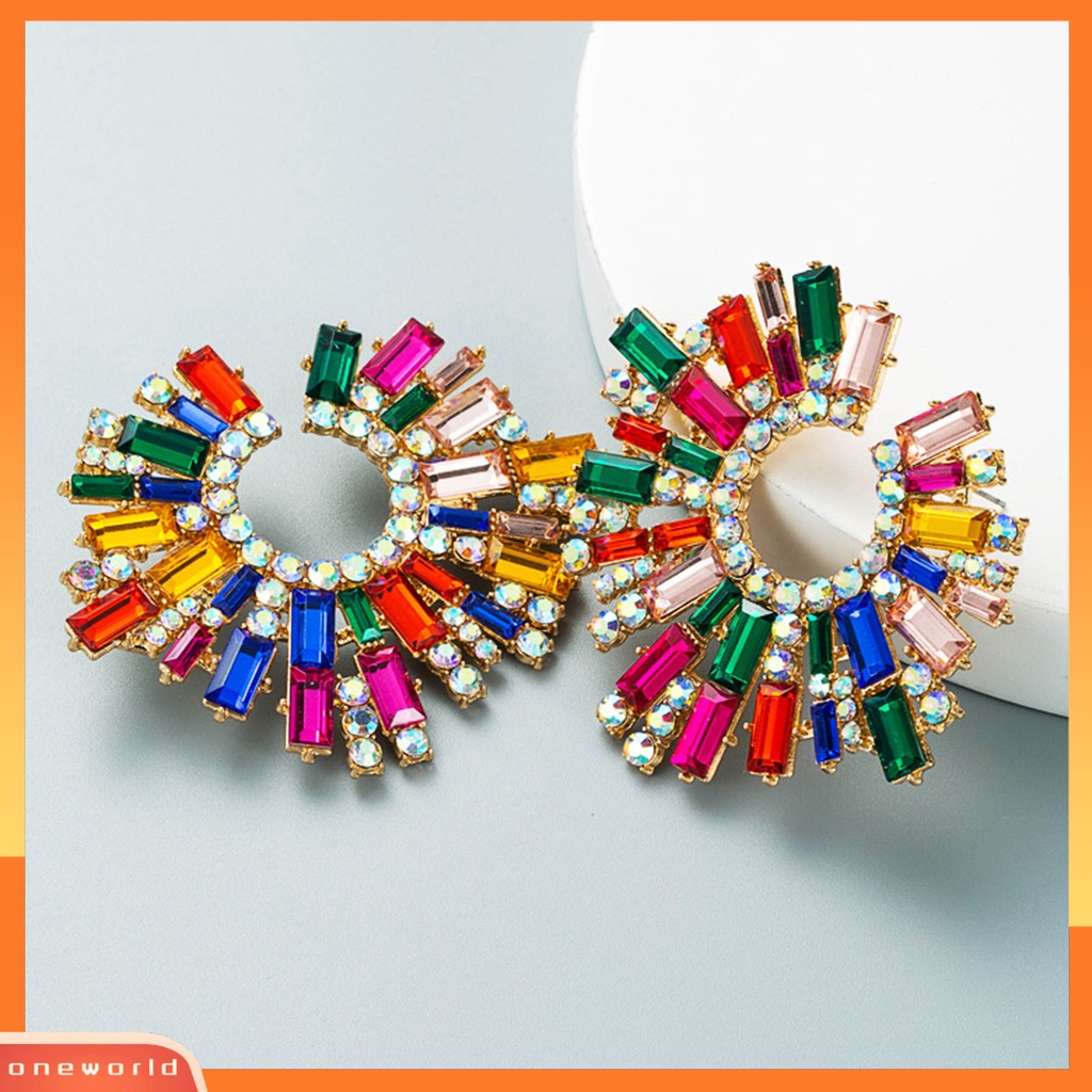 Detail [WOD] 1pasang Anting Tusuk Bentuk Bunga Matahari Multicolor Rhinestones Perhiasan Anting Bohemian Vintage Untuk Pantai