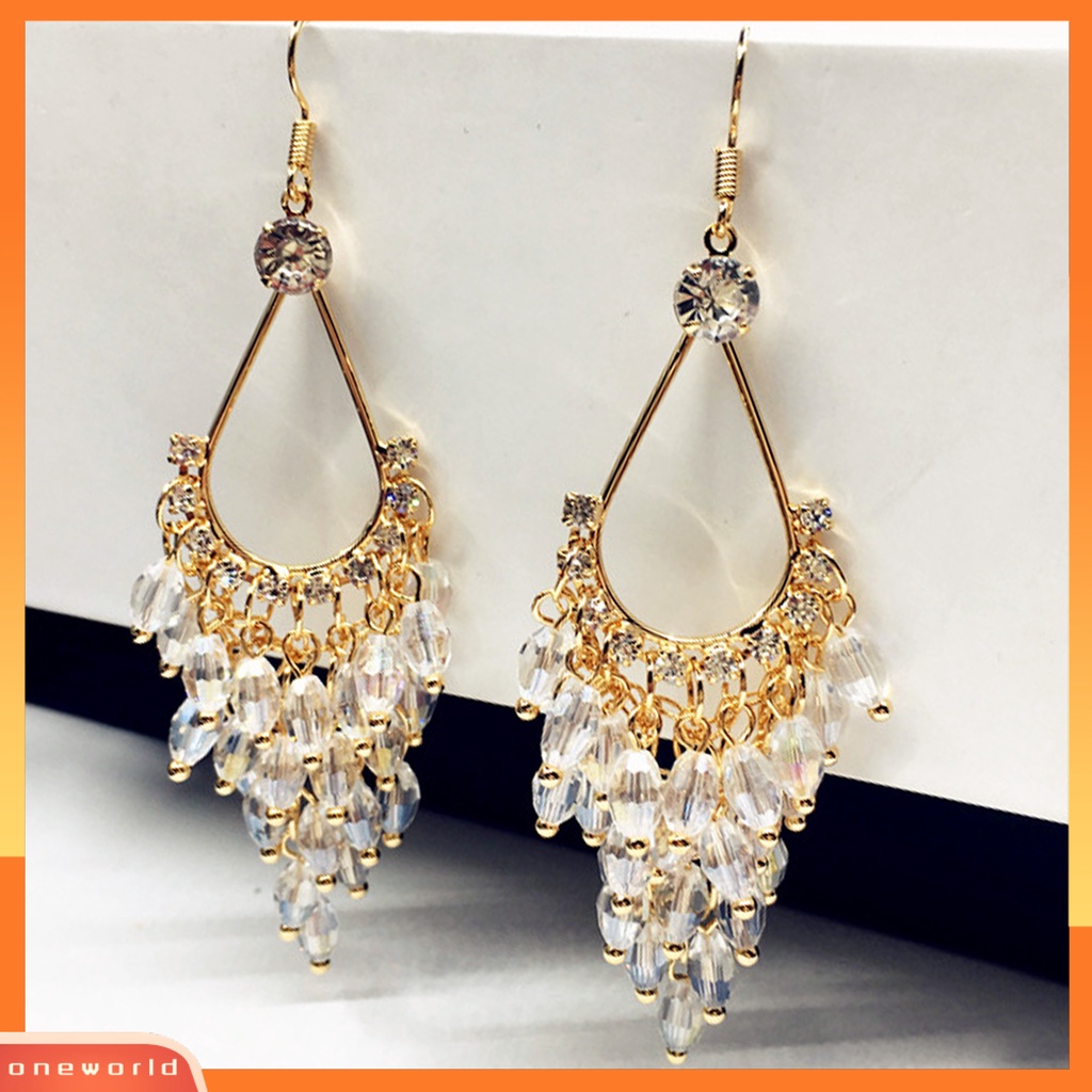Detail [WOD] 1pasang Anting Wanita Kristal Imitasi Gaya Bohemia Mengkilap High-end Drop Earrings Perhiasan Pernikahan