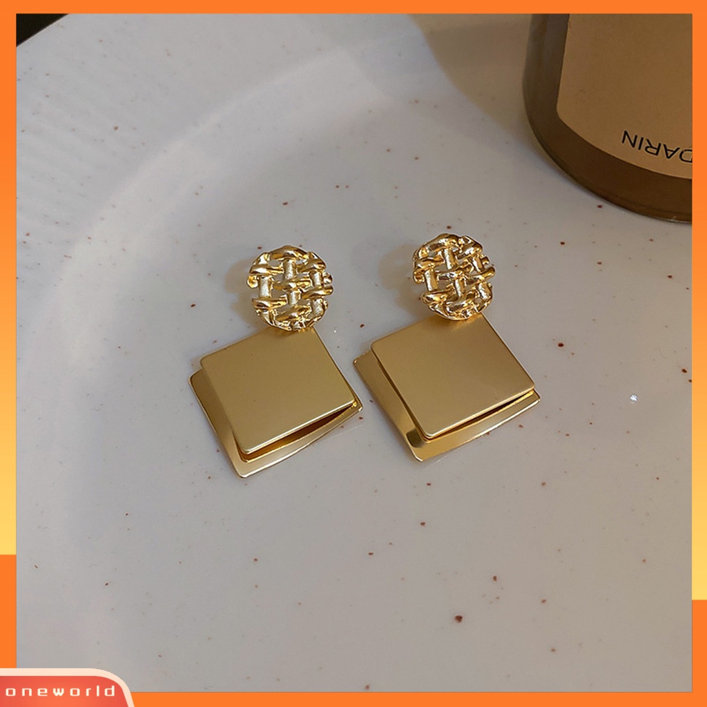 Detail [WOD] 1pasang Anting Wanita Perhiasan Geometris Electroplating Bright Luster Stud Earrings Untuk Pakaian Sehari-Hari