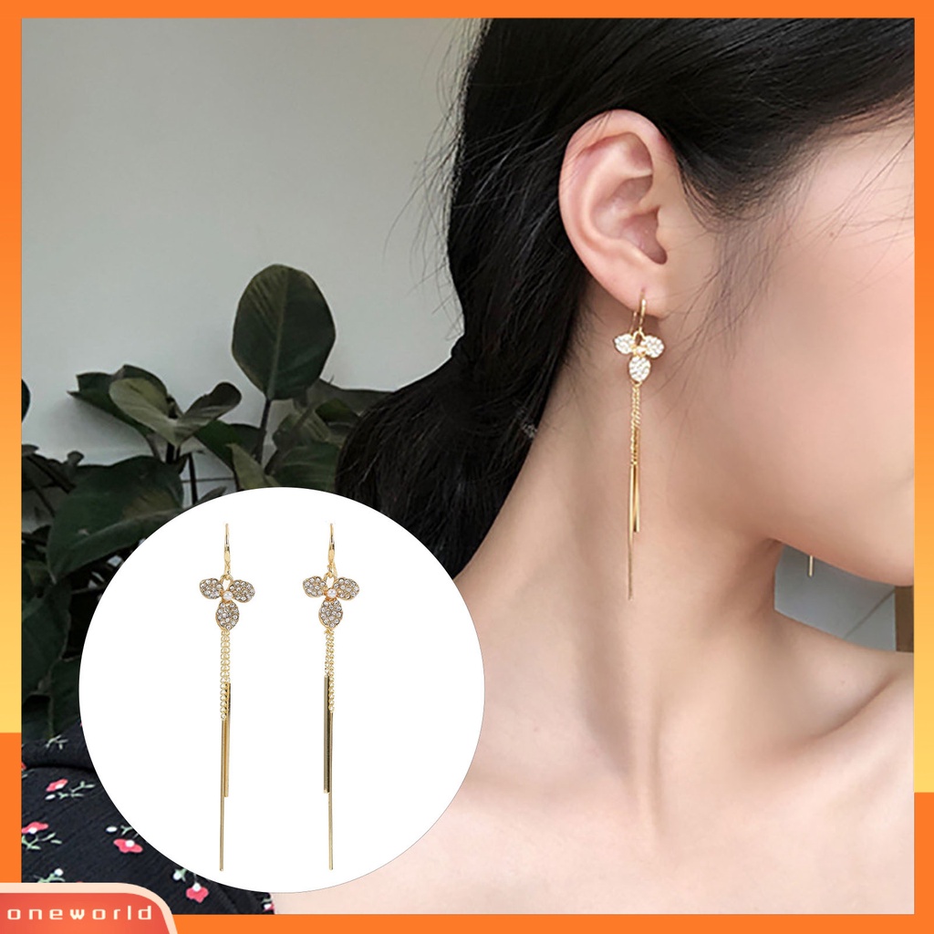 Detail [WOD] 1pasang Anting Wanita Tiga Daun Kelopak Anti Karat Chic Cewek Anting Rumbai Panjang Untuk Harian