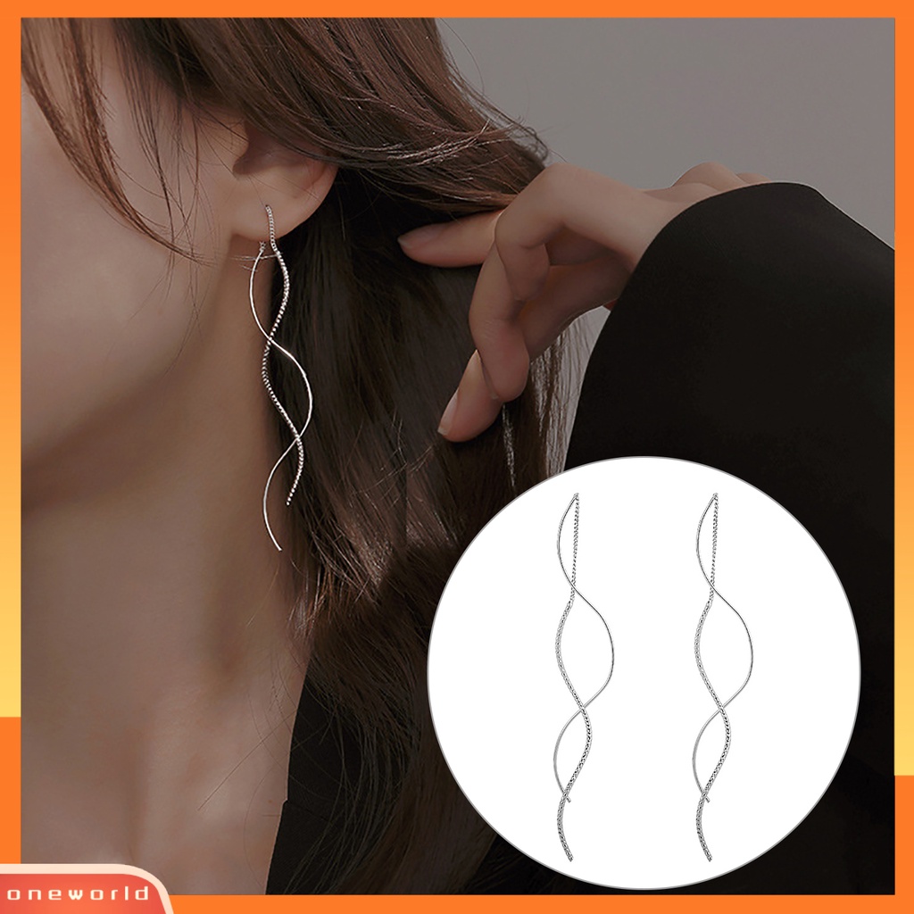 Aksesoris Fashion > Anting > [WOD] 1pasang Drop Earrings Temperamen Panjang Rumbai Geometris Tipis Anti Luntur Hadiah Hias Wanita Garis Bergelombang Menjuntai Anting Perhiasan Fashion Untuk Pakaian Sehari-Hari