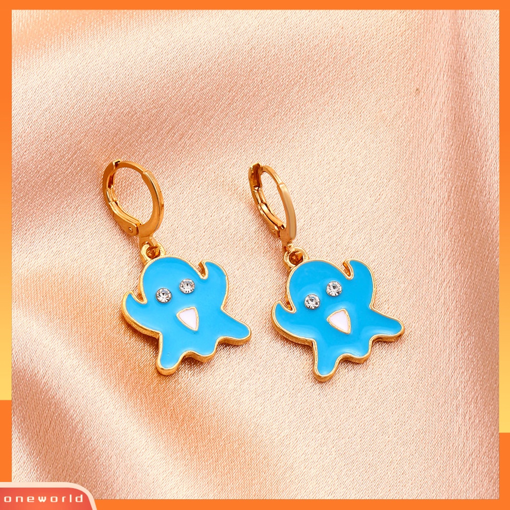 Detail [WOD] 1pasang Liontin Hantu Halloween Anting Warna Permen Paduan Berlian Imitasi Wanita Enamel Anting Pesta Perhiasan