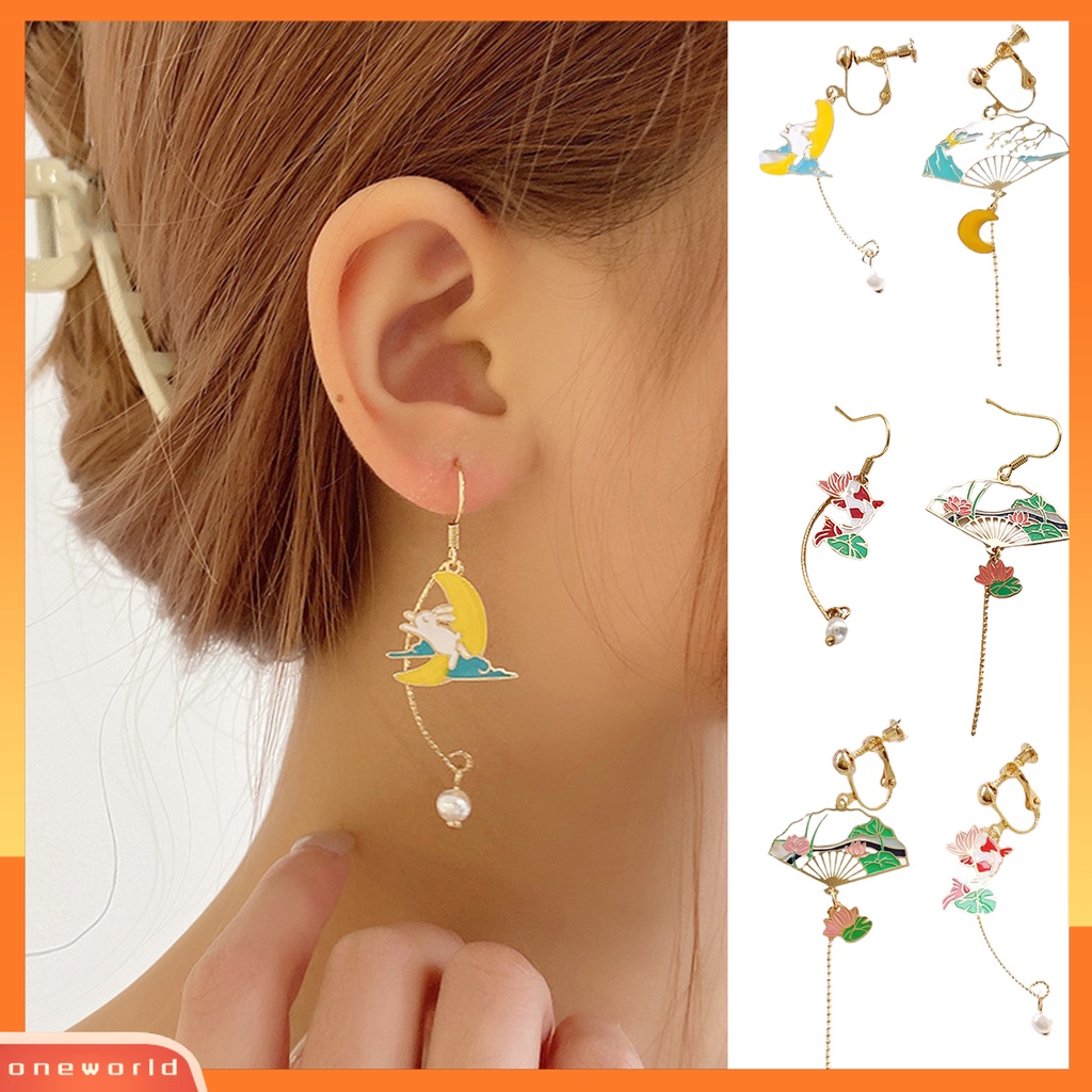 Anting menjuntai unik wanita memiliki desain kelinci asimetris, ikan, dan bunga kipas, yang akan membuat Anda menonjol di mahkota.