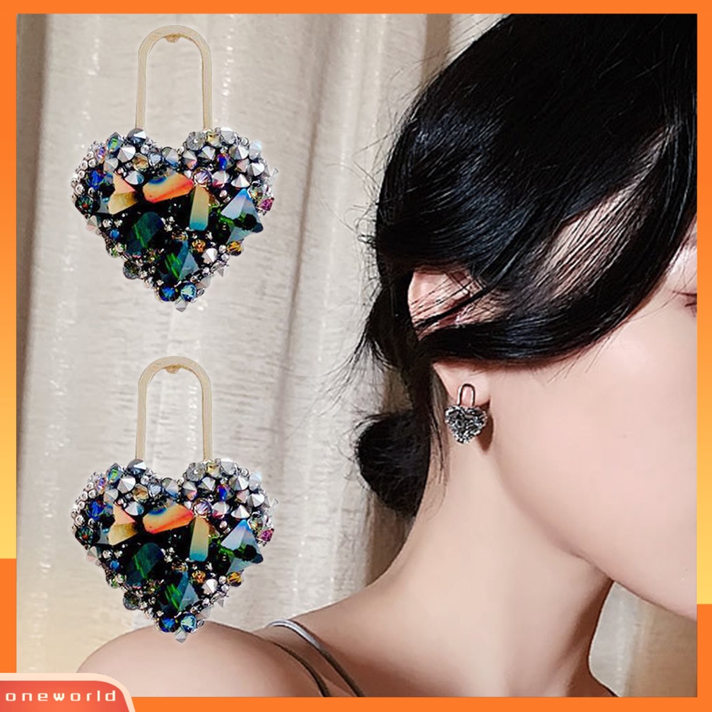 Anting-anting memiliki desain berbentuk hati, dan ada banyak berlian imitasi dengan berbagai ukuran di permukaan, memberi orang perasaan modis dan indah.