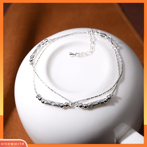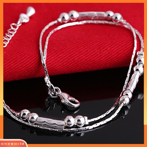Detail [WOD] Fashion Wanita Perak Berlapis Gelang Alloy Beads String Chain Bracelet Bangle