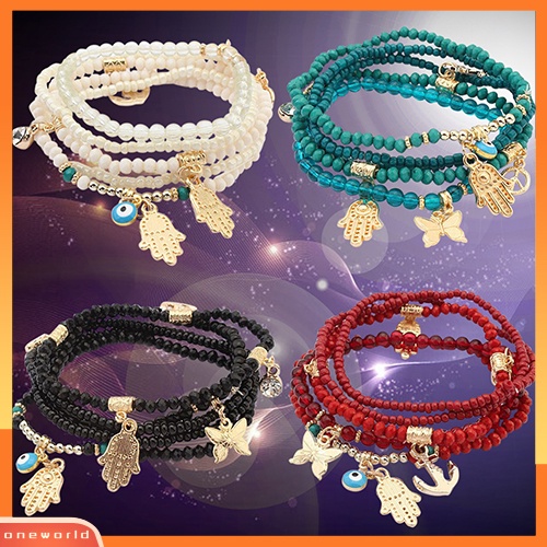 Detail [WOD] Gelang Bangle Beads Multilayer Tangan Hamsa Fatima Wanita Tangan Butterfly Anchor Eye